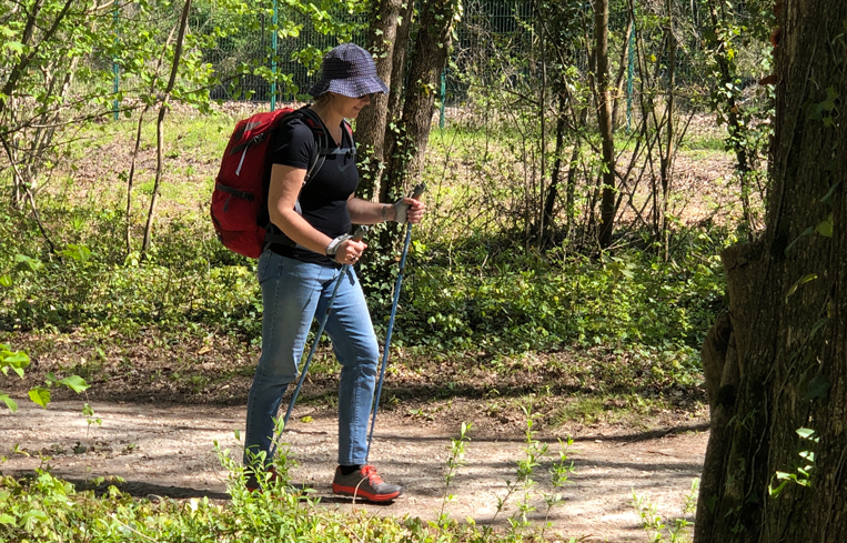 Dimanche 18 mai : une première sortie longue de 22km et 6h de marche. On avait prévu le ravitaillement pour la pause du déjeuner. Mais en pratique, on a plutôt grignoté tous les 5km, jalon que l’on se fixe pour déposer le sac, s’étirer les épaules et les jambes.