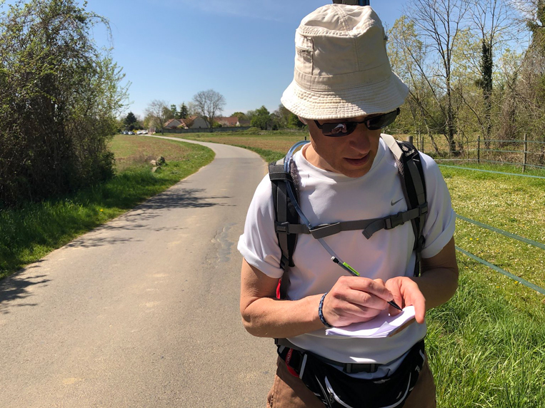 Vendredi 23 et samedi 24 avril : là, c’est le challenge en mode réel. Nous avons décidé de déposer la voiture à Mennecy et de rentrer à la maison l’après-midi sur un parcours de 18km avec sac complet. L’objectif est de voir comment on relance la machine le lendemain matin pour faire le chemin inverse et récupérer la voiture. Car, sur le Chemin, c’est bien ce qui va se passer. Tous les soirs on arrive quelque part et tous les matins, fatigués ou pas, il faudra repartir pour 20km de plus (moyenne quotidienne) et avancer.