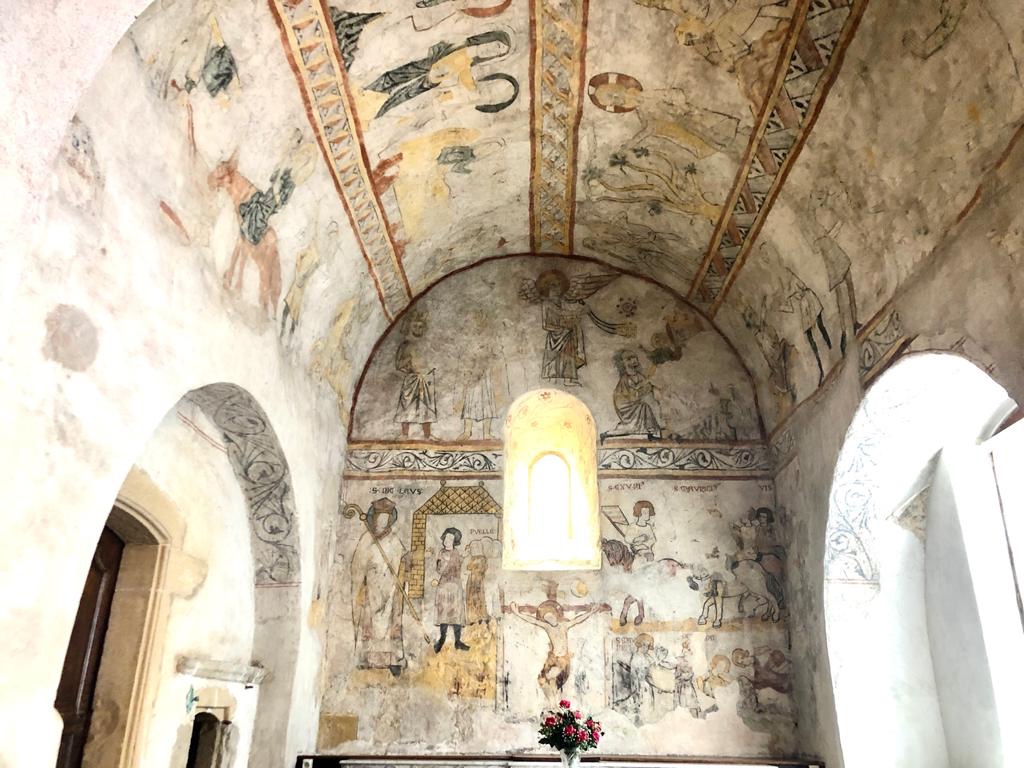Le dîner est super sympa autour d’une énorme table carrée ce qui permet de beaux échanges avec nos hôtes et nos collègues de marche. On se régale des produits des fermes environnantes. Pour m’endormir, j’attrape un livre d’un pèlerin chinois qui a fait d’une traite Le Puy–Compostelle. Son carnet de voyage est magnifiquement illustré d’estampes et de proverbes chinois. Nous tombons dans les bras de morphée sous un temps exécrable. Mais tant qu’il pleut la nuit, ça nous va bien 😕