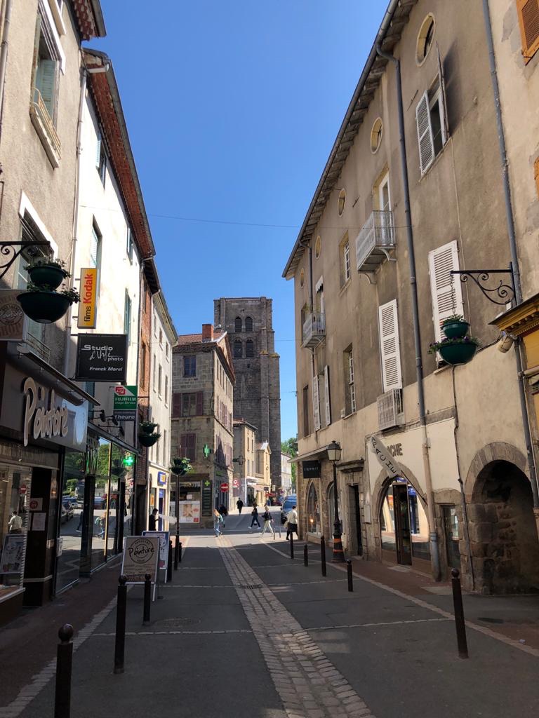 Montbrison, sous-préfecture et capitale du Forez, est l’étape du jour. Cette petite ville nous accueille avec son centre médiéval bien aménagé. La cité a un joli cœur historique. En son centre, une des anciennes rues commerçante est réputée pour faire la connexion entre le Languedoc et la champagne. C’est vous dire si elle est (était) active. Après avoir fait tamponner nos crédentiales et laisser nos sacs à l’office du tourisme (les gens sont toujours sympas avec les pèlerins), nous partons découvrir le cœur de Montbrison le dos léger, ça change. Depuis 6 jours nous n’avions traversé que des villages ou bourgs très calmes. Mais en même temps, ici, c’est une ville, une vraie : elle est animée, voire bruyante. C’est bizarre comme on déconnecte vite. Finalement, marcher dans la nature nous coupe du monde et de son rythme. C’est ce que nous voulions et nous l’avons trouvé. Pas vraiment pressé d’y revenir.