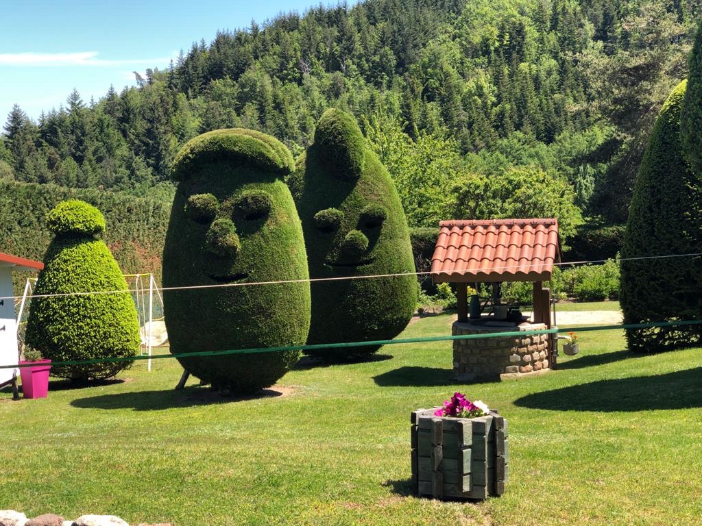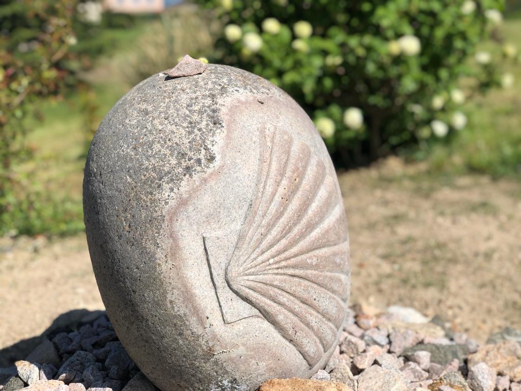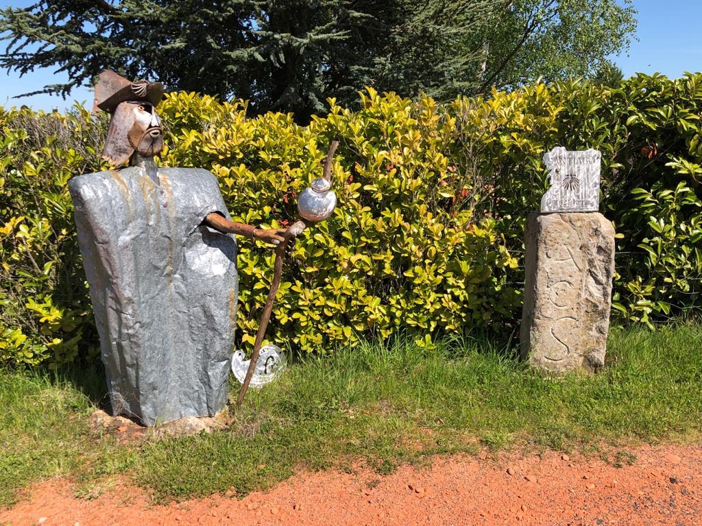 Au terme de notre montée, connue comme étant le tronçon le plus difficile du parcours jusqu’au Puy), nous arrivons à Marols, étape du soir. Il se trouve que ce tout petit village de 400 âmes est labellisé « village de caractère ». Il a fait sa renommée avec ses maisons de pierre restaurées et ses artistes en résidence. De nombreuses œuvres d’art ponctuent un parcours de 9km dans et autour du bourg. De notre côté, nous serons ravis d’en voir sur le Chemin mais nous ne ferons pas le détour exprès 😉.