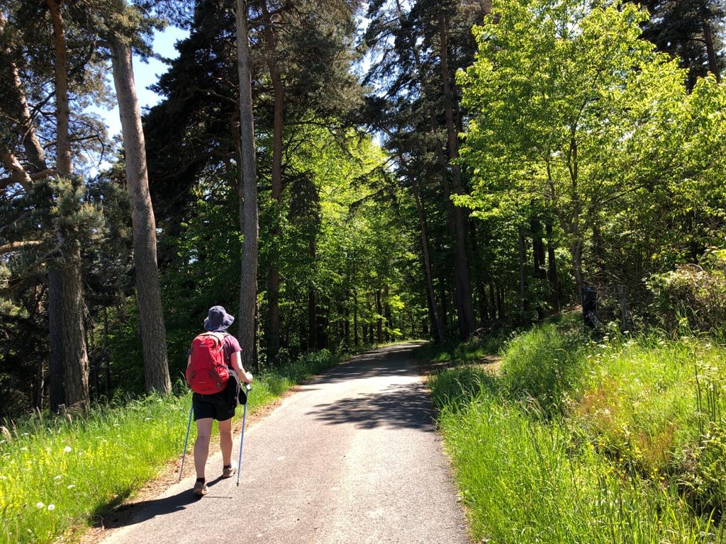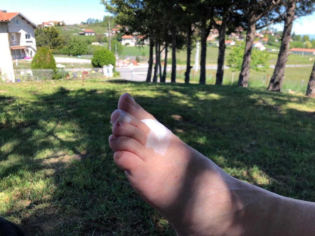 Sophie a mérité sa surprise achetée à la boulangerie du village d’avant car il lui a fallu puiser dans ses réserves physiques et mentales aujourd’hui : elle apprécie deux petites meringues pour le goûter. Elle commence à souffrir des talons mais elle résiste en serrant les dents. Quelle épouse j’ai 😍 ! Ce soir, ce sera anti-inflammatoire obligatoire et puis un grand repos : nous dînons à 19h et extinction des feux à 22h. Demain, plus courte étape ( 18km quand même) mais on continue de grimper jusqu’au 1100m 🔋.