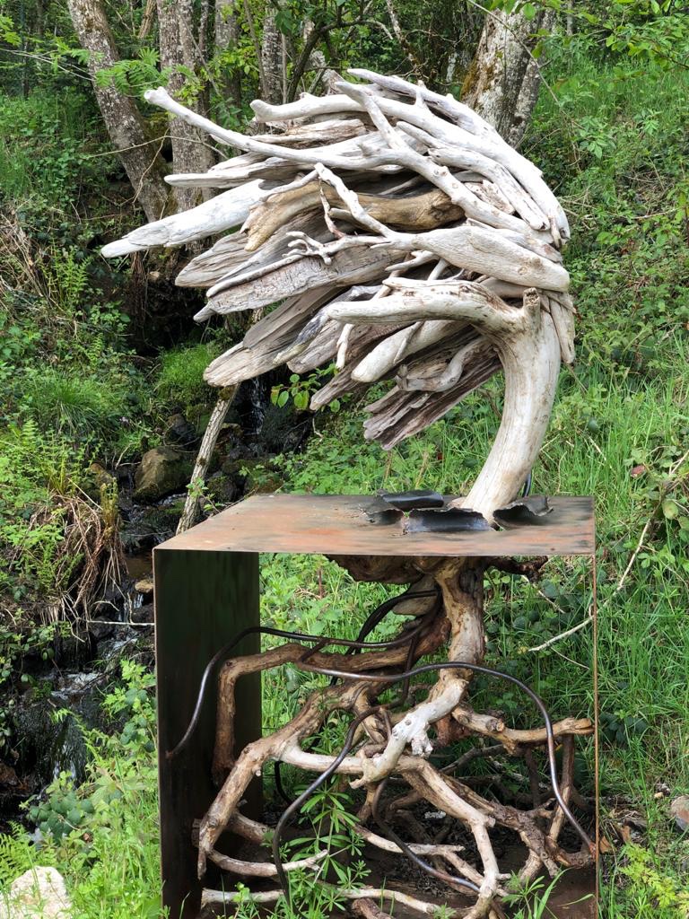 Avant de quitter le village, nous visitons les ruelles désertes. A n’en pas douter, c’est le plus beau que nous ayons visité jusque là. Tous les bâtiments sont rénovés, des œuvres d’art sont réparties dans tous les coins et recoins. Tout a été fait avec soin et harmonie. Nous prenons le temps d’un café dans le seul bistrot-épicerie. Le patron nous explique l’histoire de cette transformation commencée il y a 40 ans. Sur ces entrefaites, un vieux monsieur salue le cafetier. C’est Dédé. Il est à l’origine du choix politique et financier qui a été pris de créer ce village d’artistes pour qu’il ne meurt pas. Il est tout ému de nous voir le féliciter. Et puis le Monsieur a été un marcheur comme nous. Cela met en connection.