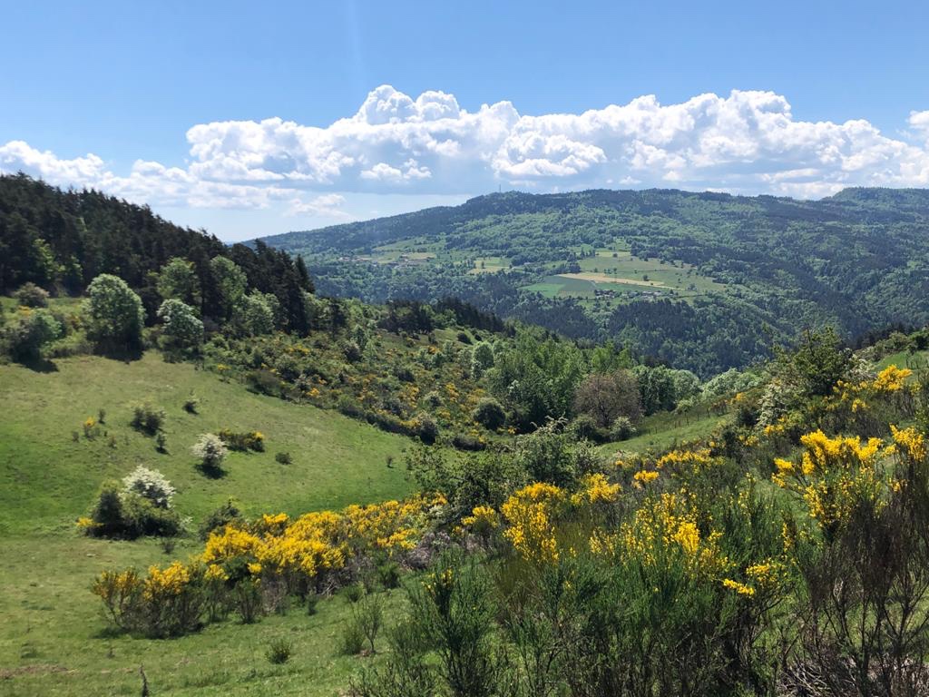En tout cas, une chose est sûre : les panoramas de Haute Loire sont à couper le souffle. Quel pays magnifique nous avons ! Nous avons fait une nouvelle expérience de marcheurs : après le déjeuner, nous avons divisé notre vitesse de marche par deux pendant 20 mn. Selon Paulo Coelho, l’idée est de ressentir les choses différemment en se forçant à ralentir. Expérience enrichissante pour l’écoute de soi et de son environnement.