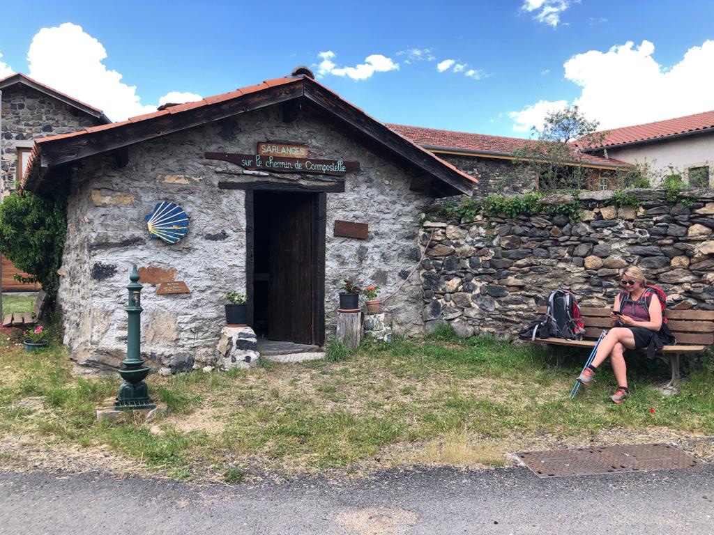 Dans le tout micro bourg de Sarlanges, le premier relais spécial Pèlerin de tout notre périple : banc, abri et la première fontaine d’eau potable. C’est quand même incroyable qu’avec autant de marcheurs et de randonneurs dans la région, les mairies n’installent pas de robinet pour recharger les gourdes. L’accès à notre gîte d’étape se fait sous une pluie assez forte qui nous contraint à nous ré-équiper en tenue de pluie avec coupe-vent et poncho. Cela ne nous était plus arrivé depuis une bonne semaine et on s’en passe très bien.