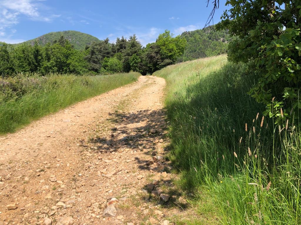 Bon la rigolade est terminée. Nous n’en sommes qu’à 18 km et il nous en reste encore 10 de descente jusqu’à Vorey, village étape du jour. Nous décidons un repli sécuritaire vers la route qui descend presque aussi fort que le GR mais sans les cailloux. Un ancien que nous croisons dans son potager nous confirme que la descente est dangereuse. Bien nous en a pris.