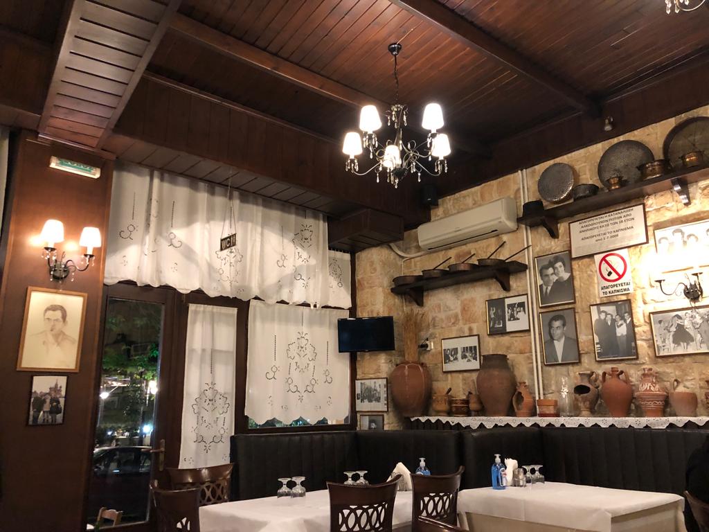 Mais c’est surtout sur les murs de la salle que l’intérêt se porte. Toute la déco est faite de photos anciennes retraçant la vie des aubergistes. Je m’approche, j’observe, je hèle le serveur pour avoir des explications. Dans un anglais plutôt rugueux, il se fait comprendre en nous donnant moult détails. Il nous parle de l’histoire de la Grèce, de la guerre d’indépendance contre les Ottomans et de la guerre civile qui a commencé en 1946 opposant pendant trois ans les anciens résistants communistes et les loyalistes soutenus par nos amis grand-bretons. Pour appuyer son propos, et quand il est frustré de son anglais approximatif, il se lance dans des explications en grec pensant être plus clair. Heureusement que Wikipédia en simultané nous permet de contextualiser et de mieux comprendre. En tout cas, on y passe un tellement bon moment que l’on décide d’y retourner le lendemain soir.