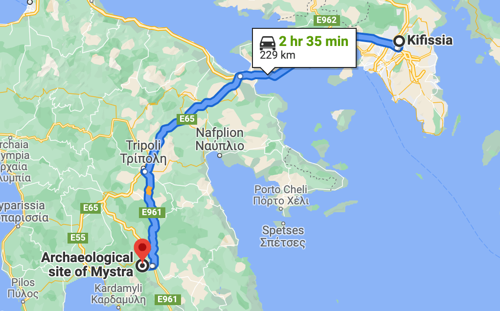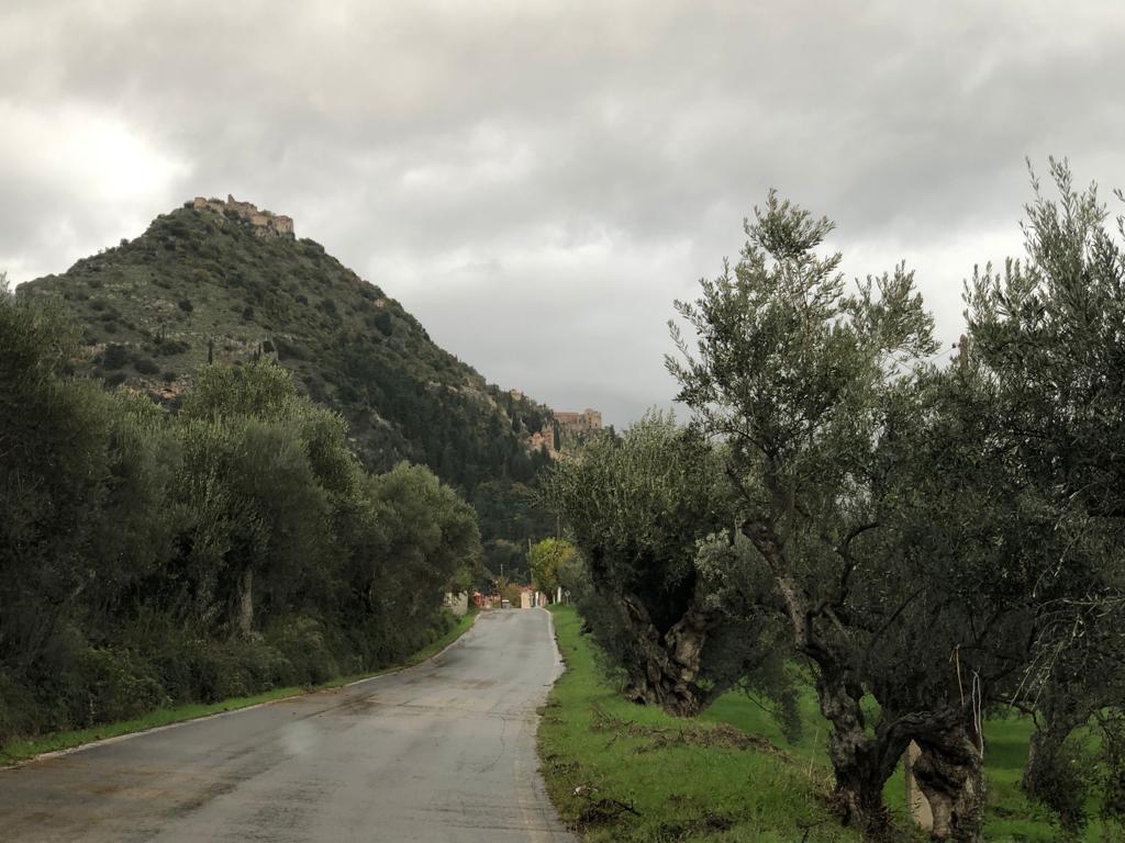 La première étape de notre road-trip est Mystras. Nous n’en avions jamais entendu parlé avant d’y aller. C’est au centre du Péloponnèse, juste à côté de Sparte. Sparte, les Spartiates, toute la mythologie grecque, on y est ! En bien en pratique, il n’y a rien de rien à voir à Sparte. On est dégoûté. Il faut dire que Sparte est la seule cité de Grèce dépourvue de murailles car d’après Lycurgue, (législateur mythique de Sparte dont le nom veut dire « celui qui tient les loups à l’écart », ambiance) « une ville bien défendue est celle qui est entourée d’un mur d’hommes, et non d’un mur de briques ». Je ne vais pas vous refaire toute l’histoire de l’époque. Mais il semble quand même que la victoire des troupes du Péloponnèse sur son ennemi de toujours a été favorisée par l’envoi des troupes athéniennes envoyées pour conquérir la Sicile. Pas de bol !