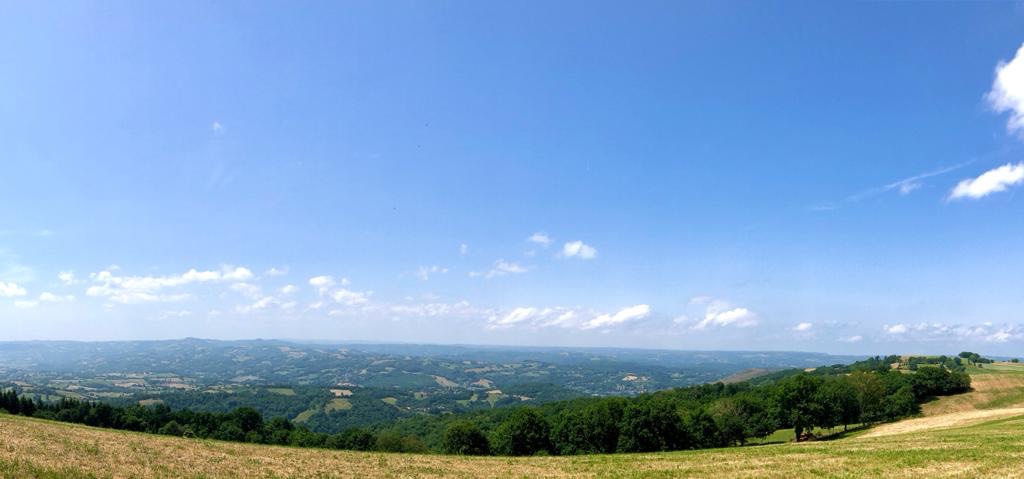 La vue de la terrasse de la maison est superbe. Nous dominons toute la vallée du Lot avec le village de Livinhac en fond. Philippe, notre hôte, est un grand trailer : déjà 2 Diagonales des Fous (Île de la Réunion) et 2 Ultra-Trail du Mont-Blanc (UTMB) qu’il trouve bien plus difficile. Le trajet que nous avons fait ce jour depuis Conques, il le fait aller et retour en courant en 6 heures soit 46km. Ça galope !