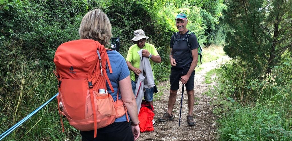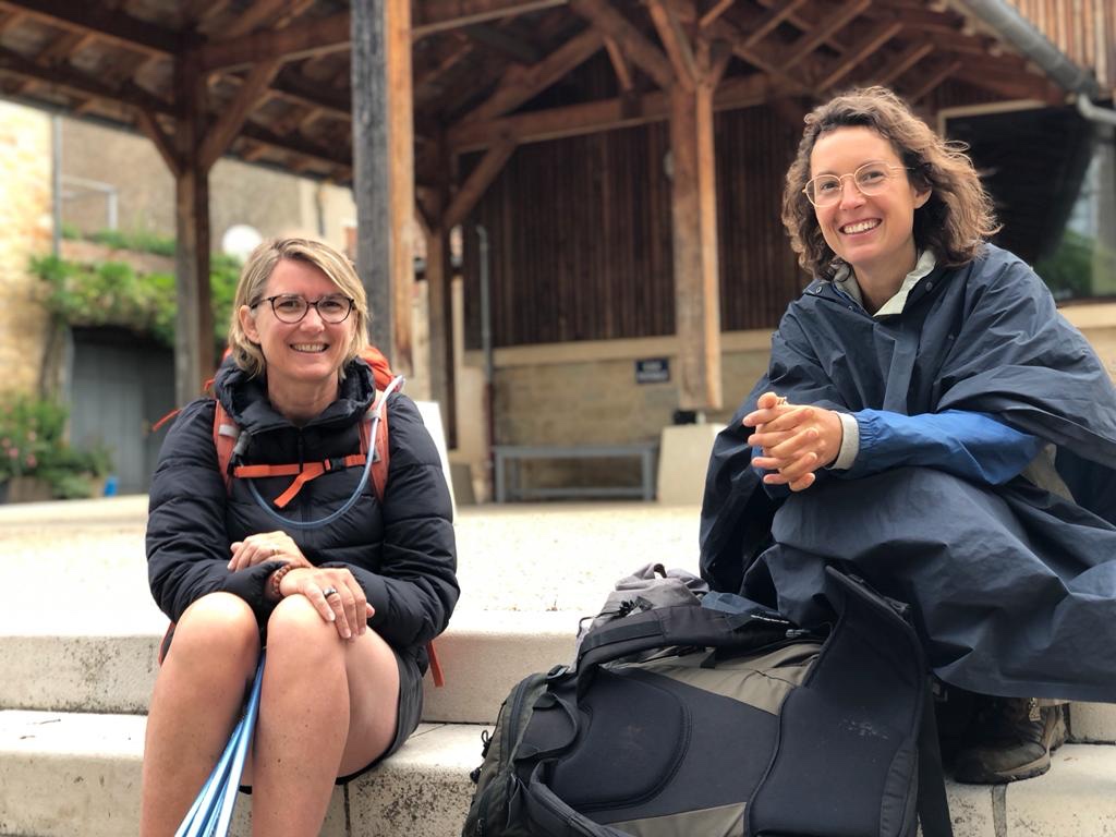 Nous faisons la connaissance de Camille, une franco-allemande qui espère atteindre l’Espagne à la mi-juillet. Elle a 40 ans en paraît 30. Elle est atteinte de Fibromyalgie, maladie très douloureuse et très fatigante qui l’handicape énormément. Elle travaille à mi-temps, est intolérante au gluten et autres donc elle porte plusieurs jours de provisions dans son sac, d’ors entre la moitié et les deux tiers de la journée (elle dit que c’est pour ça qu’elle fait jeune). Comme dit Sophie, elle vit sa vie à moitié : debout la moitié du temps, job la moitié de la journée, mange la moitié des aliments.