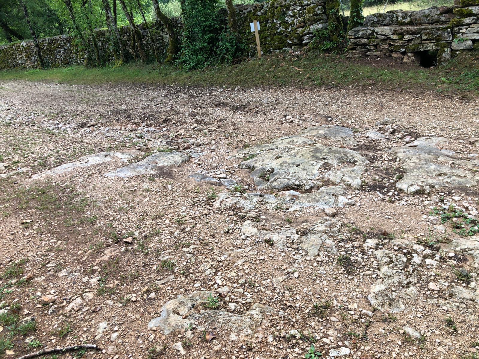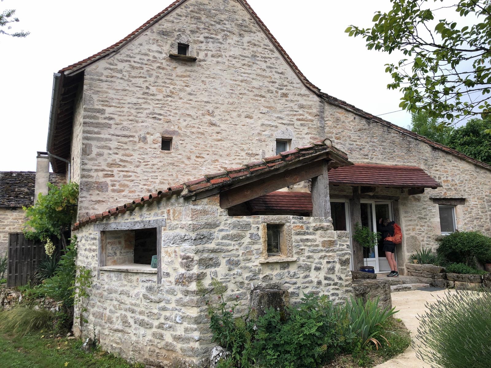 Nous réalisons plus concrètement pourquoi ce paysage du Causse du Quercy est aussi particulier. En fait, le plateau calcaire affleure sur tout l’espace. Cela veut dire que l’épaisseur de terre végétale varie entre 5 et 50 cm. Du coup les chênes ne font que 5 m de haut car ils ne peuvent enfoncer leurs racines plus profondément. Le gîte dans lequel nous étions n’est posé sur aucune fondation si ce n’est les grandes dalles de calcaire. Cela explique aussi la pauvreté économique du coin puisque, à part un peu d’élevage (le fameux agneau du Quercy) globalement rien ne pousse. Il y a eu un peu d’extraction de Phosphate mais les puits se sont taris rapidement et la concurrence venue du Maroc a accéléré la fin de cette maigre industrie lotoise.