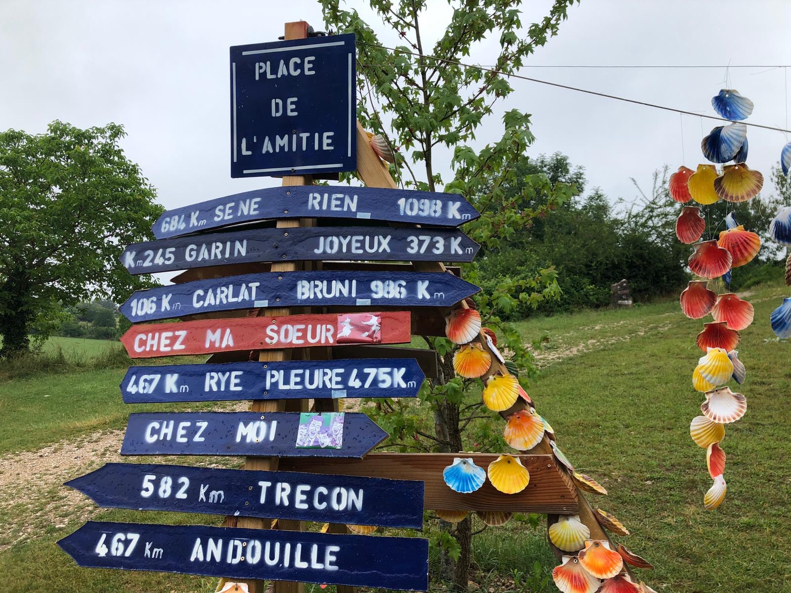 Les hôtes du gîte de la Hulotte sont très sympathiques et nous ont fait un très bon repas. Comme quoi, avec un peu d’inspiration et un robot type magimix, on peut faire un super potage et de très bons plats. Nous partageons le souper avec une allemande qui a déjà fait un bout du chemin depuis Munich et une mamie de 76 ans qui en est à son troisième Chemin. Nous aimerions bien avoir sa santé au même âge tenant compte du fait qu’en plus de marcher ses 12/13km quotidiens, elle porte son sac. Par contre, c’était Madame-je-sais-tout qui a monopolisée la parole et nous a racontés toute sa vie. Heureusement qu’elle est partie tôt ce matin et que l’on a pu échanger un peu plus longuement avec l’Allemande.