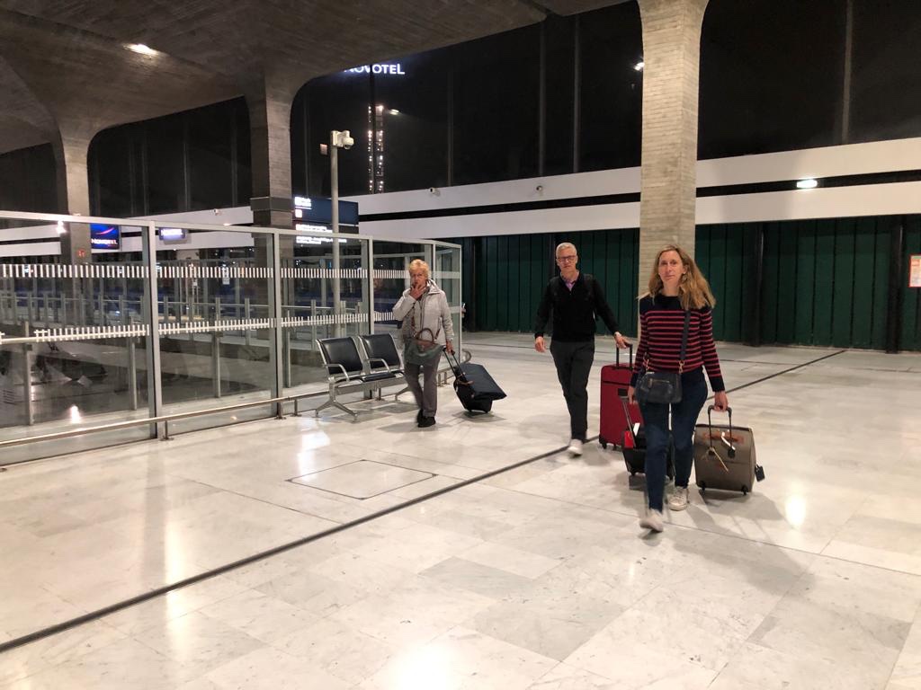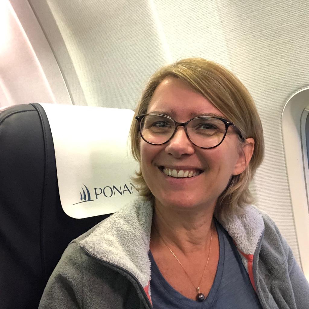 L’embarquement à 6:30 nous contraint à un lever qui pique un peu (4h). Mais il ne faut que 15mn à pied pour rejoindre le terminal 3 de CDG pour embarquer à bord de l’avion spécialement affrété par la compagnie. A bord, le ton est donné avec des appuie-têtes siglés Ponant et un petit déjeuner servi dans de la vaisselle et avec des couverts en métal. C’est le standard d’une business class dans un fauteuil de charter. Notre voisine italienne, qui paraît très bien élevée, découpe à la fourchette et au couteau son croissant pour ne manger que l’extérieur grillé de sa viennoiserie en laissant le coeur plus blanc. Etrange comme dégustation. A sa décharge, un croissant d’avion n’est pas un symbole de gastronomie non plus.