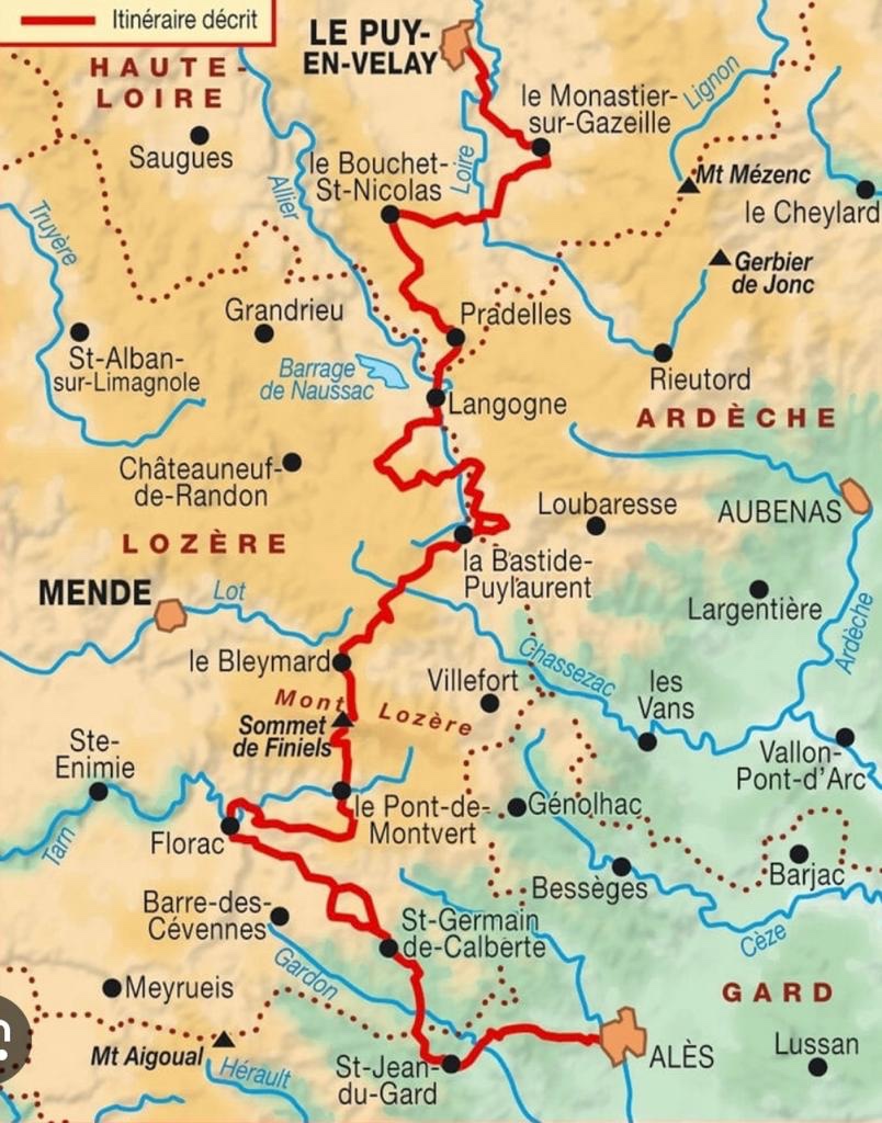 Nous voici donc parti sur un nouveau chemin, celui de Stevenson emprunté en 1878 par le fameux romancier (L’Ile au Trésor, Docteur Jekyll et Mr Hyde). Un itinéraire phare du Massif Central, 272 km du Puy-en-Velay à Alès… 4 départements traversés : Haute-Loire, Ardèche, Lozère, Gard et qui deviendra plus tard le GR70.