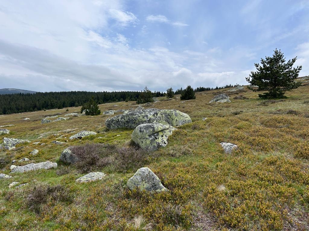 Il est 13h, nous décidons de ne pas en rester là et continuons la montée de +300m vers le col du Mont Finiels. Notre balade est superbe et nous permet de découvrir une partie du massif que l’on n’aurait pas vu sur la Chemin. Bon ok : sur une étape initialement prévue de 7km, on a terminé à 17km. Mais on a bien profité : un renard a détalé devant nous et des busards ont tournoyé au-dessus de Sophie à la recherche de chair fraîche !