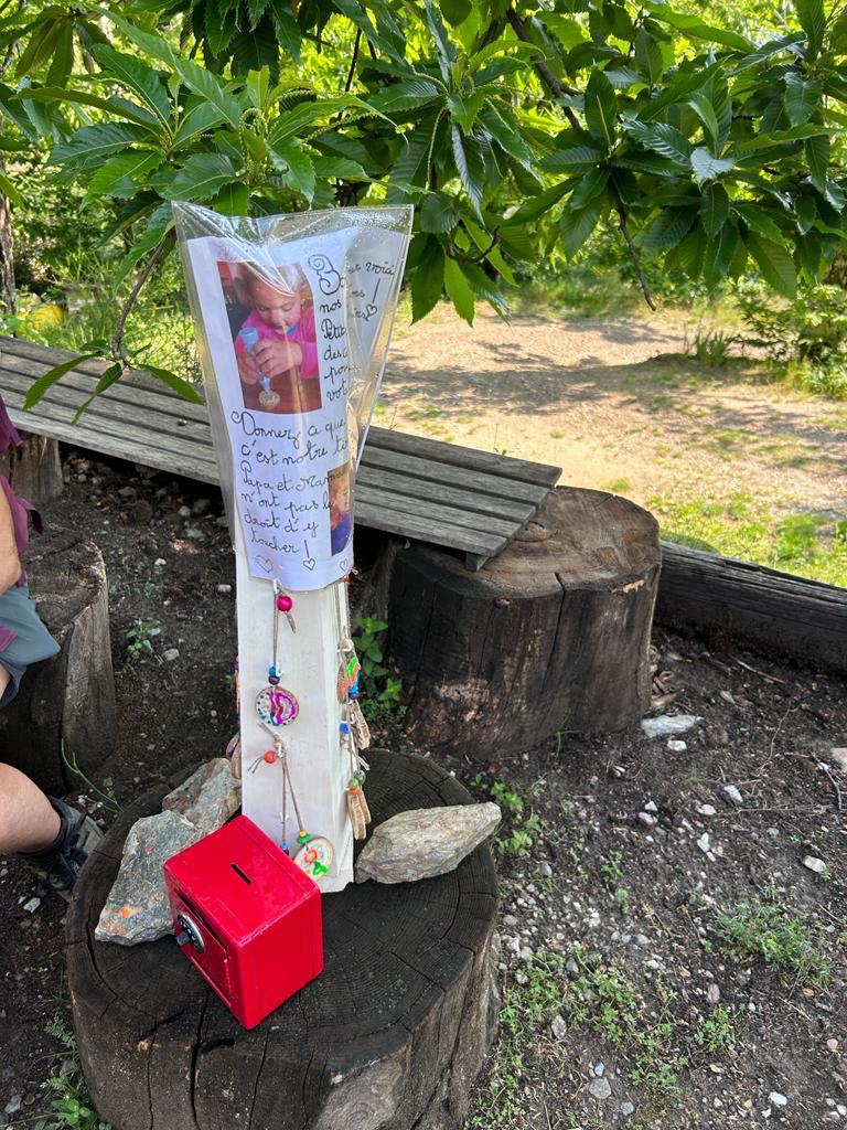 Sur la descente, nous tombons sur un stand de produits locaux sans personne. C’est comme un petit marché, avec des jus, des conserves, des confitures. Les prix sont affichés pour chacun d’entre eux. On se sert, on ouvre une boîte en métal et on met les sous dedans (il y a au moins 50€ déjà). Leur petite fille de 5 ans réalise quelques pendentifs qu’elle vend également. Elle a une tirelire que l’on peut ouvrir pour y mettre des sous. Et c’est fini. Tout est basé sur la confiance. Nous ne serions pas étonné que ce stand fonctionne plutôt bien.