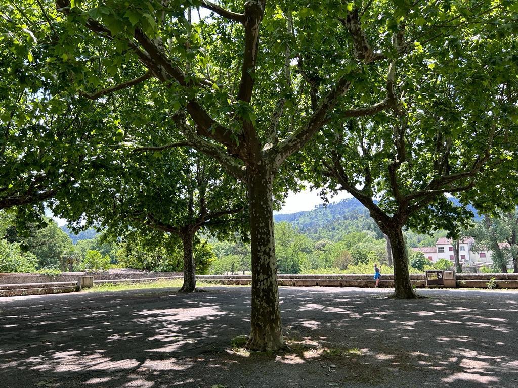 Les platanes à l’écorce camouflage offraient de bienvenus ombrages et les chants des cigales, le clapotis d’un ru agrémentaient le pas.