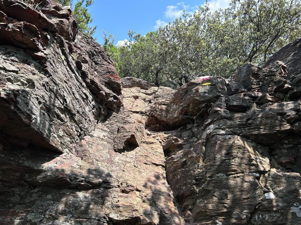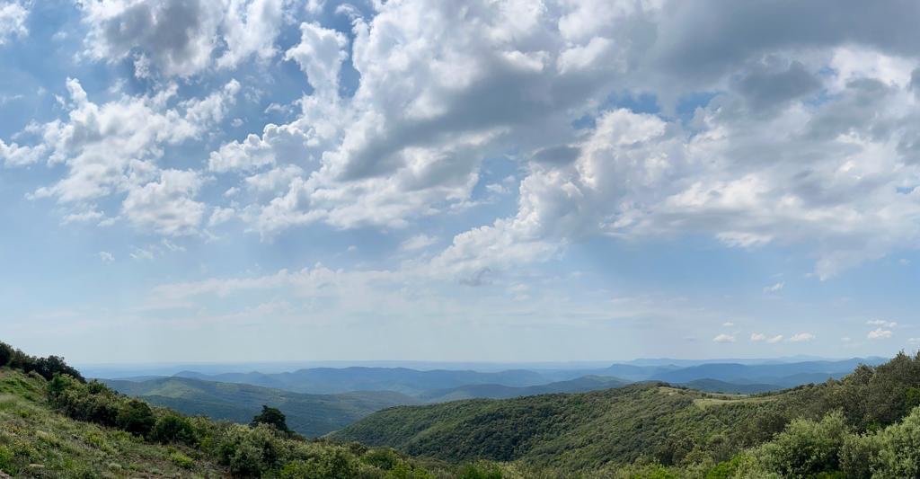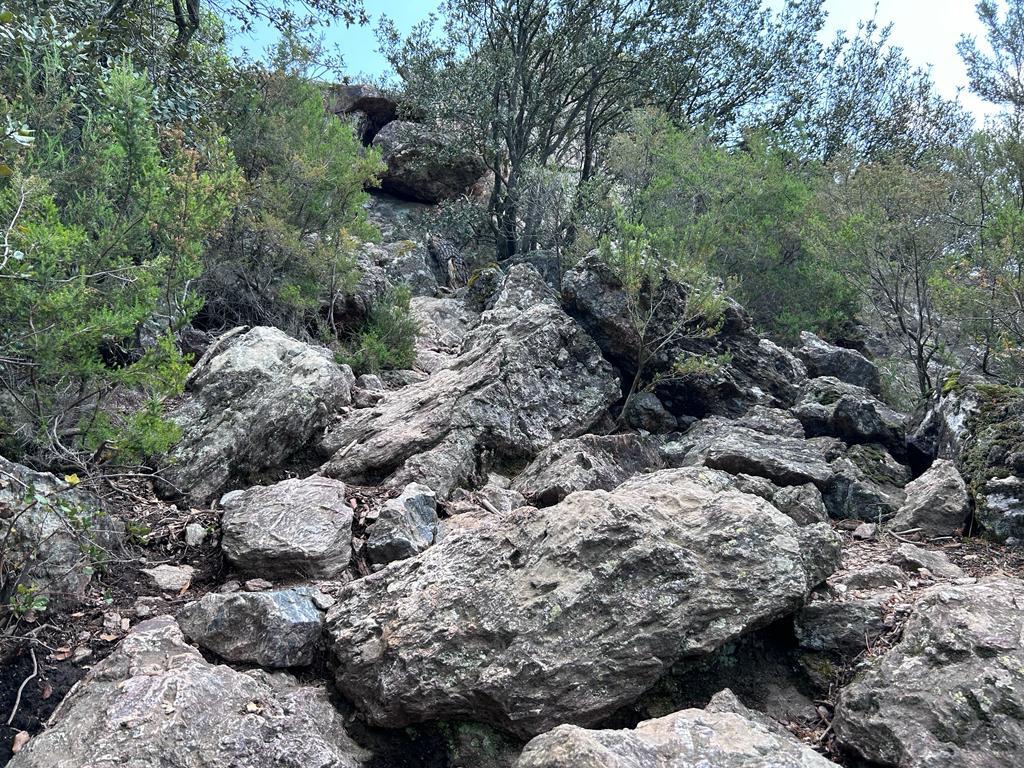 On voit qu’on a clairement changé pour un climat méditerranéen (les météorologues d’ici disent un climat méditerranéen franc). La végétation est totalement différente de la Lozère. Les arbres ici font 5m de haut maximum comparé aux hêtres et aux pins gigantesques de l’autre côté.