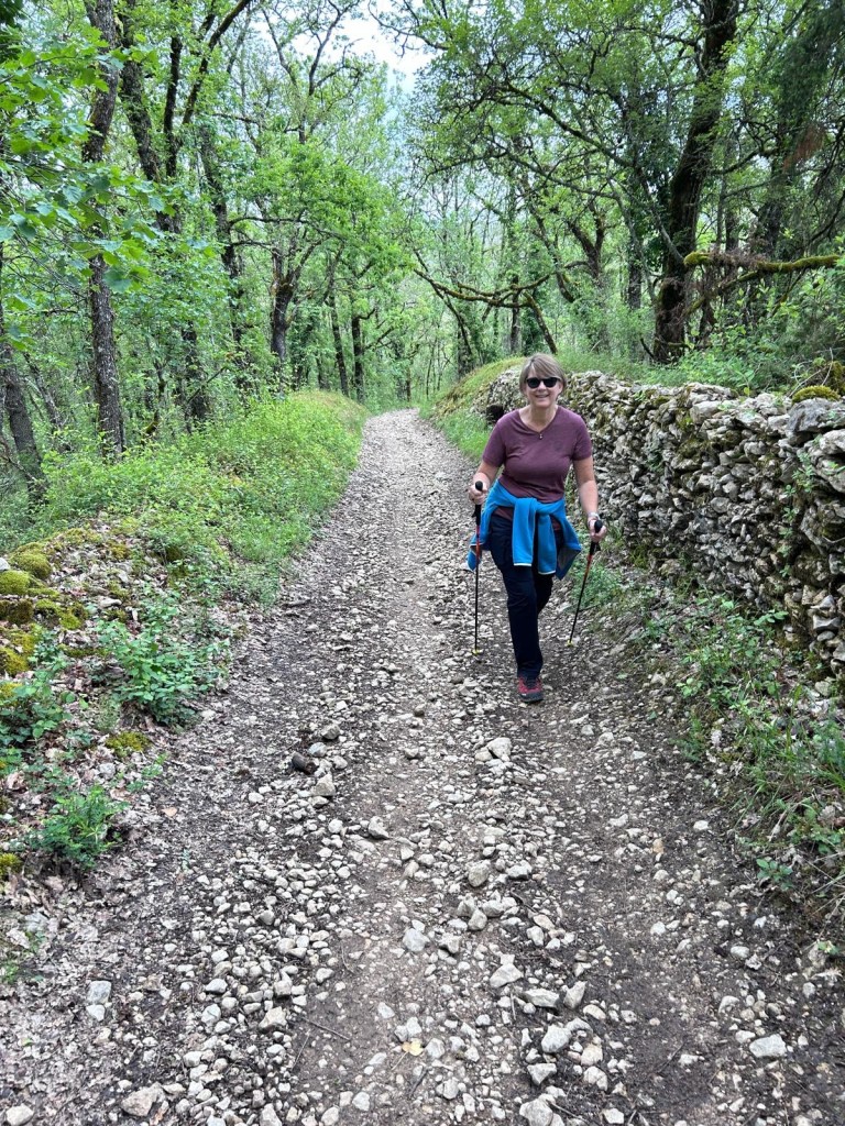 Après une belle attaque verticale bien casse-pattes juste en sortie de Cahors, dès la fin du pont de Valentré, nous sommes enfin sur le Chemin. C’est vraiment trop cool. Nous attendions cela depuis 12 mois. Nous sommes heureux. Comme l’étape est longue, nous devons gérer l’effort : la distance est la seule difficulté du jour.
