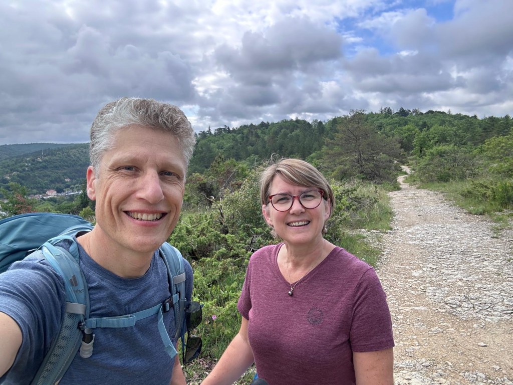 On passe un bon moment à échanger, nous à pied et eux au ralenti sur leurs machines lestées de 30 à 40 kg de matériel (car il faut tenir tout le printemps, l’été et l’automne). https://gaggero.ch/pog/expedition-ultreia/ Agnès est biologiste : c’est cool car elle nous montre les orchidées du Quercy qui poussent au printemps. Ils ne prévoient rien à l’avance pour leur hébergement mais ont la « facilité » de pouvoir faire un « petit » détour si besoin. Nous échangeons sur la Via Francigena qu’ils ont fait aussi depuis Canterbury jusqu’à Rome. La partie française jusqu’au Jura est assez peu développée en terme d’hébergements et de nourriture : c’est bon à savoir. Merci pour le tuyau.