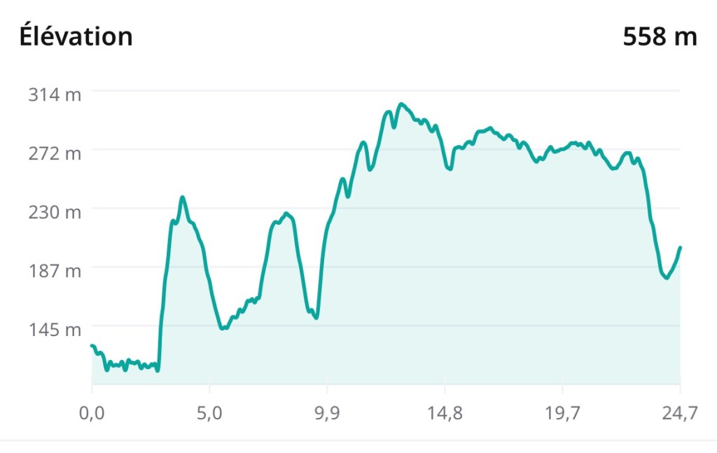 Bon allez, on attaque dans le dur direct : première étape de 24 km, histoire de nous mettre en jambes. Ça n’est pas par goût de taper fort mais comme vous le savez maintenant (en aficionado que vous êtes de notre journal de bord), ce sont les hébergements qui décident. Et comme Sophie fait tout son possible pour éviter un quelconque écart qui nous rallongerait, et bien parfois, faut ce qu’il faut (je vais devoir faire des efforts de syntaxe car nos amis anglophones, Michael, Adrian et Cory, nous lisent en traduction automatique et pas sûr que l’outil nous comprenne toujours).