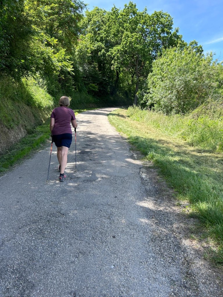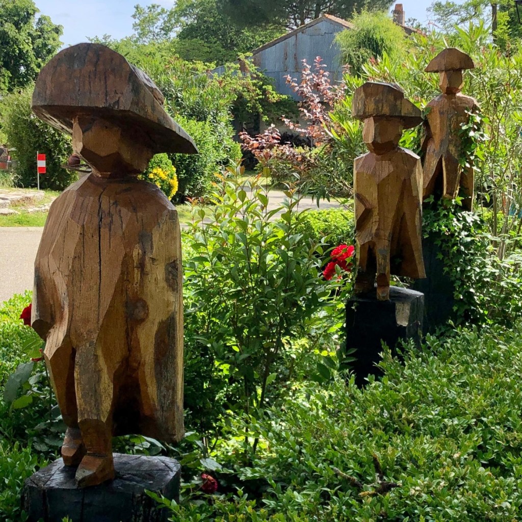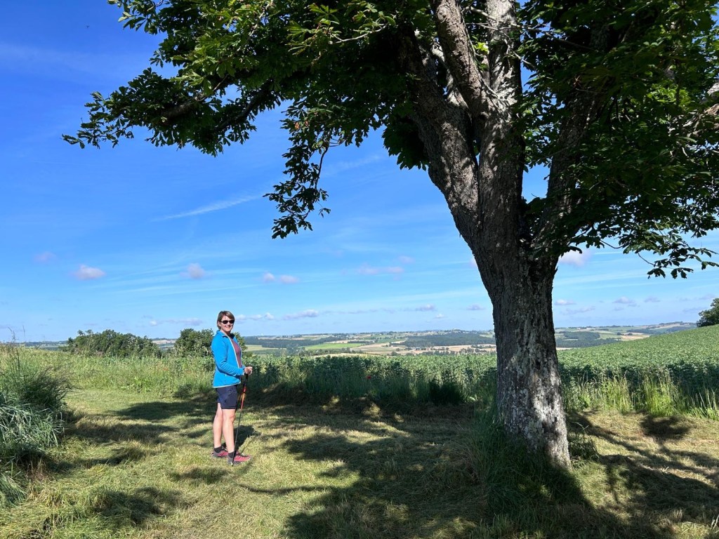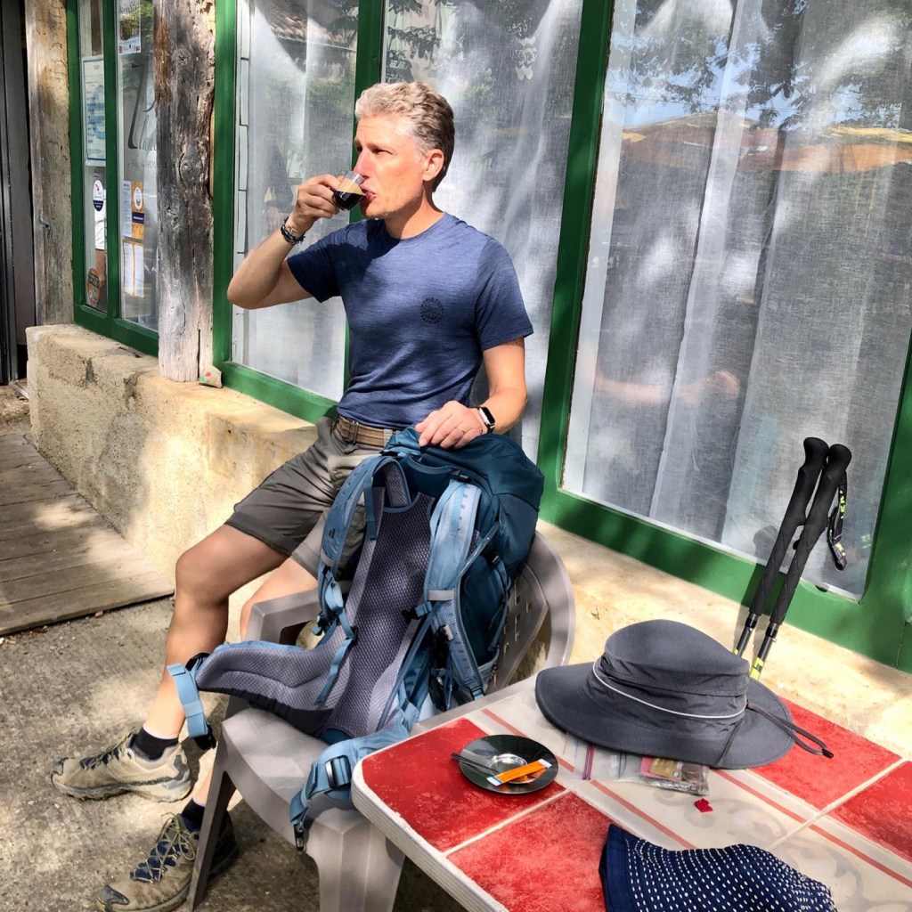 Nos hôtes d’hier soir nous ont partagés les petits trucs des hébergeurs. Ils ont d’abord créer un groupe WhatsApp qui regroupe les amis du chemin, groupe libre mais mode cooptation, tout le monde n’y accède pas. Il permet de se partager les trucs et astuces ainsi que de remonter au gîte en amont l’état des sentiers. Mais il permet aussi d’envoyer en aval des jnfos et des commentaires sur les marcheurs qui arrivent. Les mauvais coucheurs, les ronchons et ceux qui critiquent jusqu’au chant des oiseaux et des cloches d’église sont « bien accueillis ». Ils s’échangent également les bons mots et les aventures des marcheurs. Notamment un qui, un jour, est arrivé à l’étape super énervé et fatigué ; après enquête, il portait des boules. Oui oui, des boules de pétanque ! Ce marcheur pensait que ça allait créer une certaine convivialité à l’étape du soir. Son hôte lui a proposé de les renvoyer chez lui ou bien de les garder précieusement jusqu’à ce qu’ils viennent les rechercher lui-même. Et son hôte de lui recommander ironiquement : « la prochaine fois, prenez un jeu de cartes. »