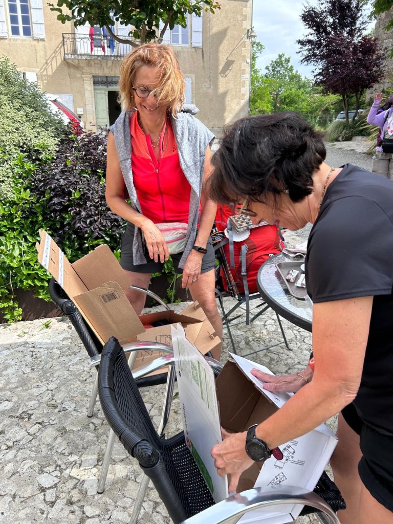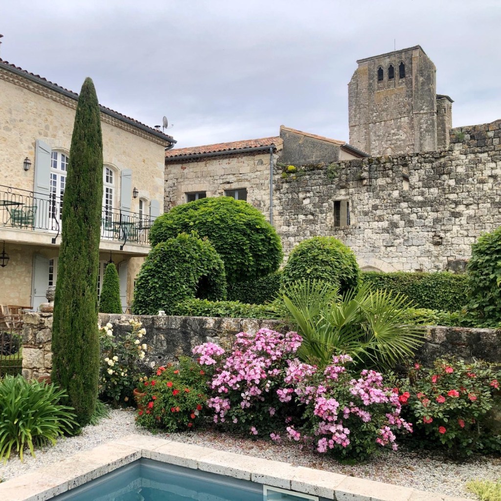 Nous avons un peu cassé la tirelire pour ce gîte étape la Maison d’Aux. Hervé et Martin viennent de Suisse et ont décidé de passer leur retraite dans le Gers. Il ne cherche pas vraiment à faire un business avec lequel ils comptent vivre. Cette maison est celle des descendants du Cardinal d’Aux qui a créé la Collégiale. La maison est superbe, la rénovation faite avec soin et la décoration est faite avec beaucoup de goût. Ils entretiennent un petit jardin à la Lenôtre et dispose d’une superbe piscine. Nous nous étonnons juste d’avoir une mini télé de table de chevet avec 50 cm de cables. Il en faut plus pour décourager Sophie qui réussit à suivre les matchs du jour à Roland-Garros 🎾.