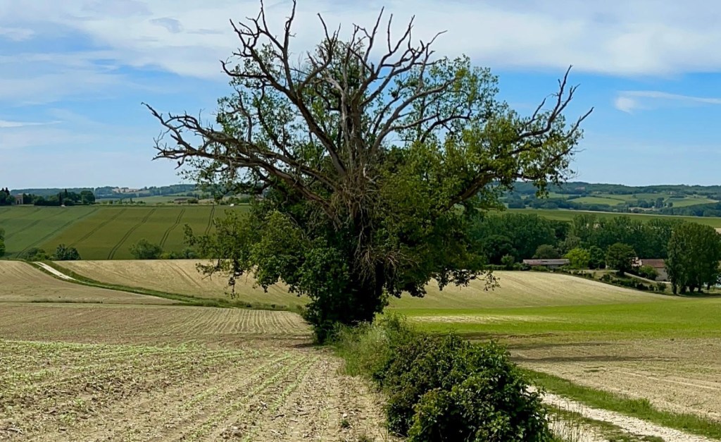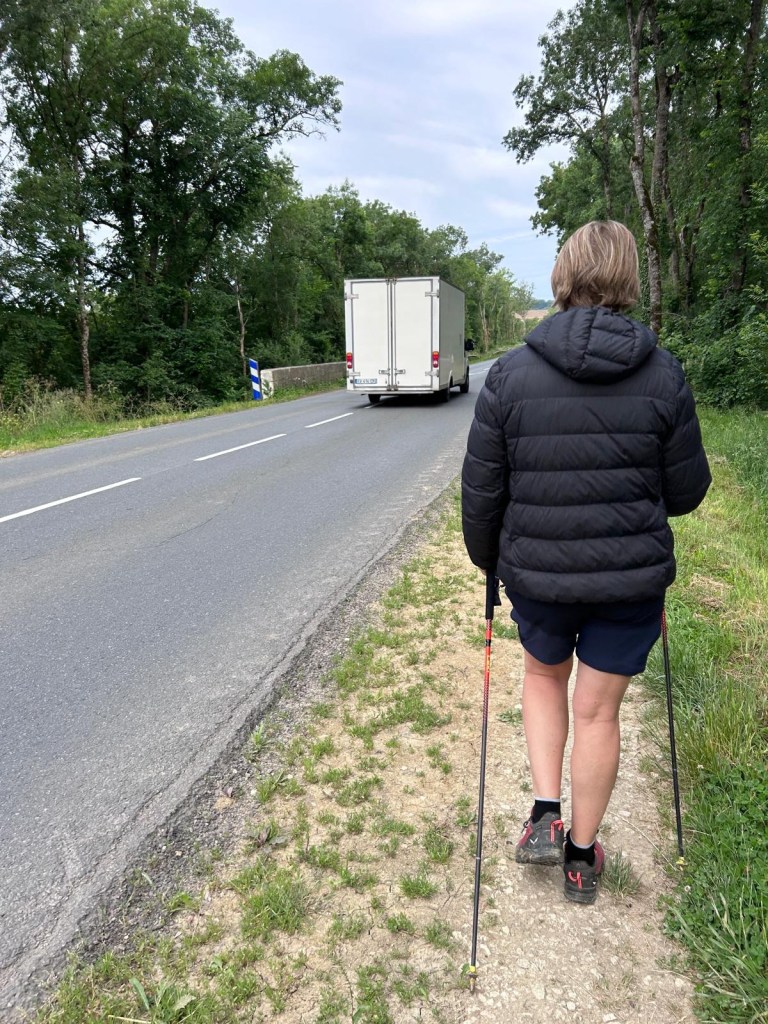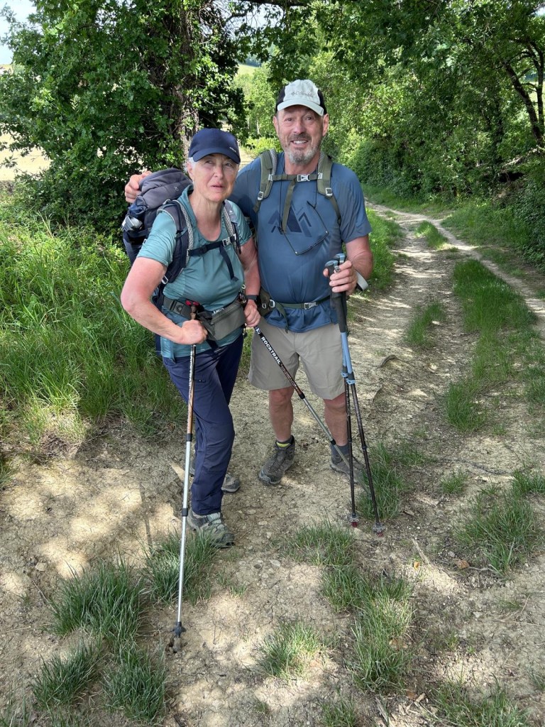 Nous croisons et recroisons un couple de retraités avec l’accent d’ici. Ils sont originaires d’Agen. Nous entamons la discussion et apprenons que Marie-Hélène est une sorte de miraculée. Elle a eu un grave accident de moto nécessitant un héliportage et 280 jours d’hospitalisation : tout le flanc gauche était cassé. Un ami, qui avait fait le chemin plusieurs fois, l’a accompagnée voir une petite chapelle et lui a dit « et pourquoi ne ferais-tu pas le chemin ? ». Accompagnée de son époux Daniel, ils font désormais des trajets d’une semaine avec des étapes entre 24 et 28 kilomètres malgré un genou toujours raide. Résilience, revanche sur la vie : que le Chemin est inspirant.