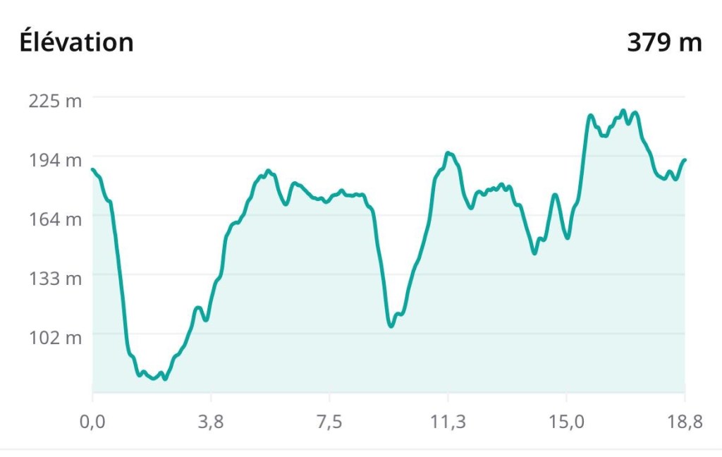 Ce matin, nous mettons en application une nouvelle méthode pour la descente. Elle a été recommandée par Salvator et Veronique : cela consiste à marcher au petit trot pour finalement laisser aller le corps, sans bloquer les genoux. Après 10 km, la méthode semble plutôt positive. À suivre.