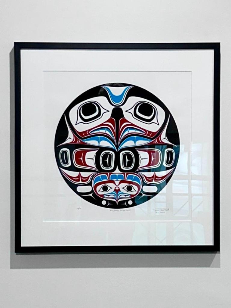 Nous irons également voir une exposition dédiée aux sculpteurs-peintres Bill Reid et Terrence Campbell : nous tombons sous le charme de l’art indien local. Les anglais du 19e siècle et les canadiens du 20e n’ont pas fait dans la dentelle pour anéantir toute forme de création indienne. Nous allons dans une galerie que Sophie et Charles ont visité pour acheter une litho qui nous a séduite.
