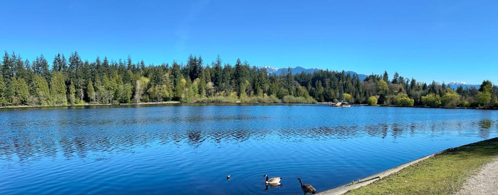 Le temps printanier et les fleurs nous invitent à une longue balade. Nous faisons le tour du Stanley Park qui est une excroissance de verdure tout au bout de la ville de Vancouver. Nous partons emmitouflés, car le fond de l’air de 14° reste frais. Par contre, les locaux sont directement en T-shirt et en short. D’après Charles, les Canadiens étant habitués à des temps polaires, sortent les tenues d’été et vont se baigner dès qu’il fait plus de 10° et ensoleillé.