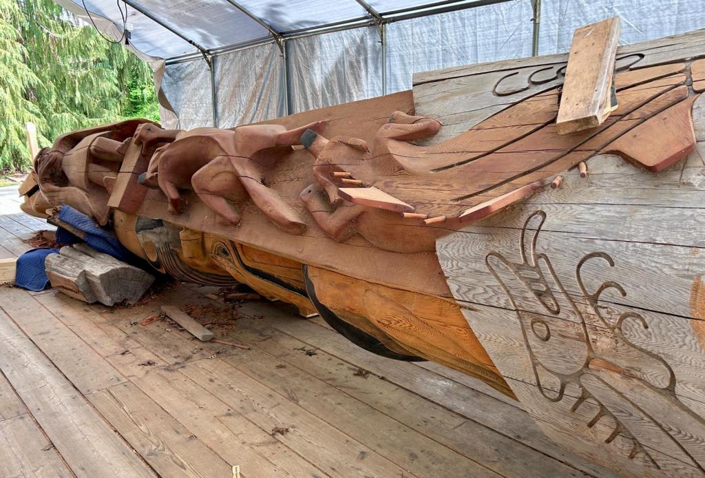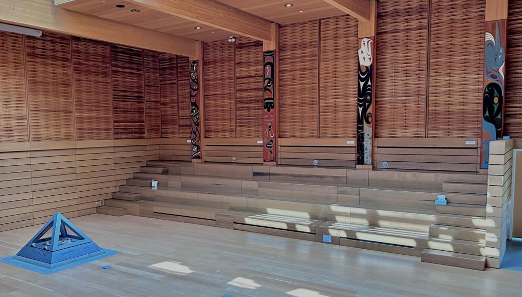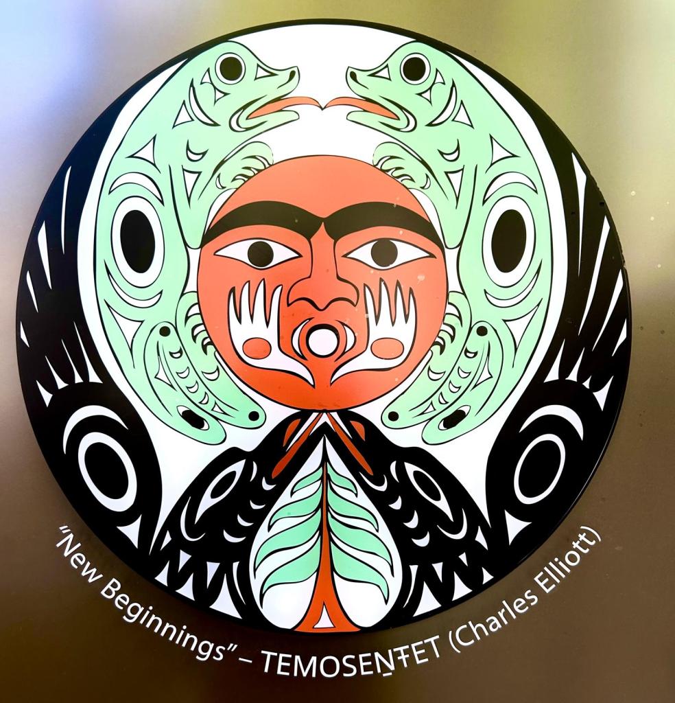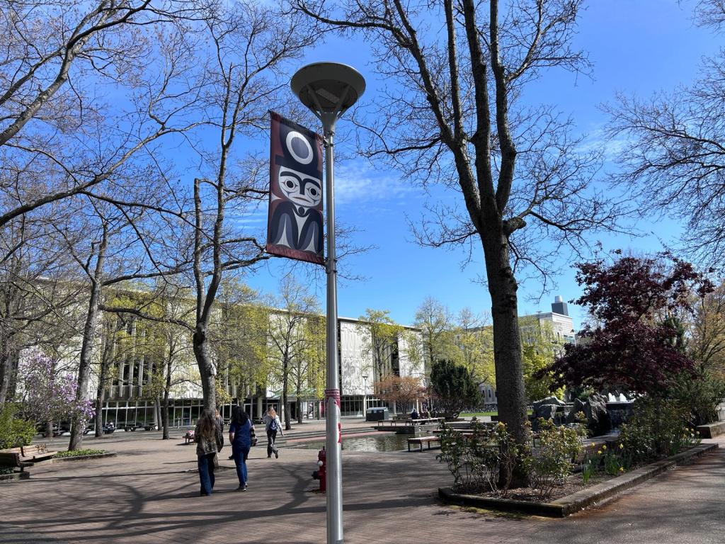 L’université de Victoria est installée sur un territoire indigène que les colons ont largement dominés (et je suis gentil) depuis le début de 19e siècle. Si vous avez suivi l’actualité : en mai 2021, il y a eu la découverte des restes de 215 corps d’enfants enterrés dans une fosse commune du pensionnat autochtone de Kamloops, en Colombie-Britannique ce qui a ravivé la blessure de cette page sombre de l’histoire canadienne. Quelques 150 000 enfants ont été scolarisés dans ces 139 pensionnats majoritairement catholiques entre 1831 et 1996. https://atlasdespeuplesautochtonesducanada.ca/article/l%E2%80%8Ahistoire-des-pensionnats-indiens-du-canada/. En 2015, le résultat de la commission indépendante du Gouvernement Canadien dite de vérité et de réconciliation a conclu « que le système scolaire des missionnaires équivalait à un génocide culturel ». Dès lors, dans toute la Colombie Britannique, la reconnaissance territoriale est une déclaration officielle qui établit la relation historique des peuples autochtones avec le territoire sur lequel nous nous trouvons actuellement. C’est une façon de faire preuve de respect pour leur présence passée et actuelle.