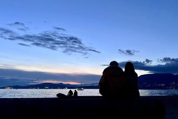 Nous faisons la rencontre de Marta, la petite amie polonaise de Charles qui a fait le trajet depuis Victoria pour passer la soirée avec nous. Nous l’invitons à notre traditionnel dîner de gala de fin de vacances et découvrons une jeune fille très ouverte d’esprit et curieuse sur plein de sujets. Charles nous avait prévenu et la réalité correspond bien à la description qu’il nous en avait faite. Nous passons une soirée délicieuse et finissons par le stop romantique de Vancouver : la plage de Kitsilano face au coucher de soleil. Superbe.